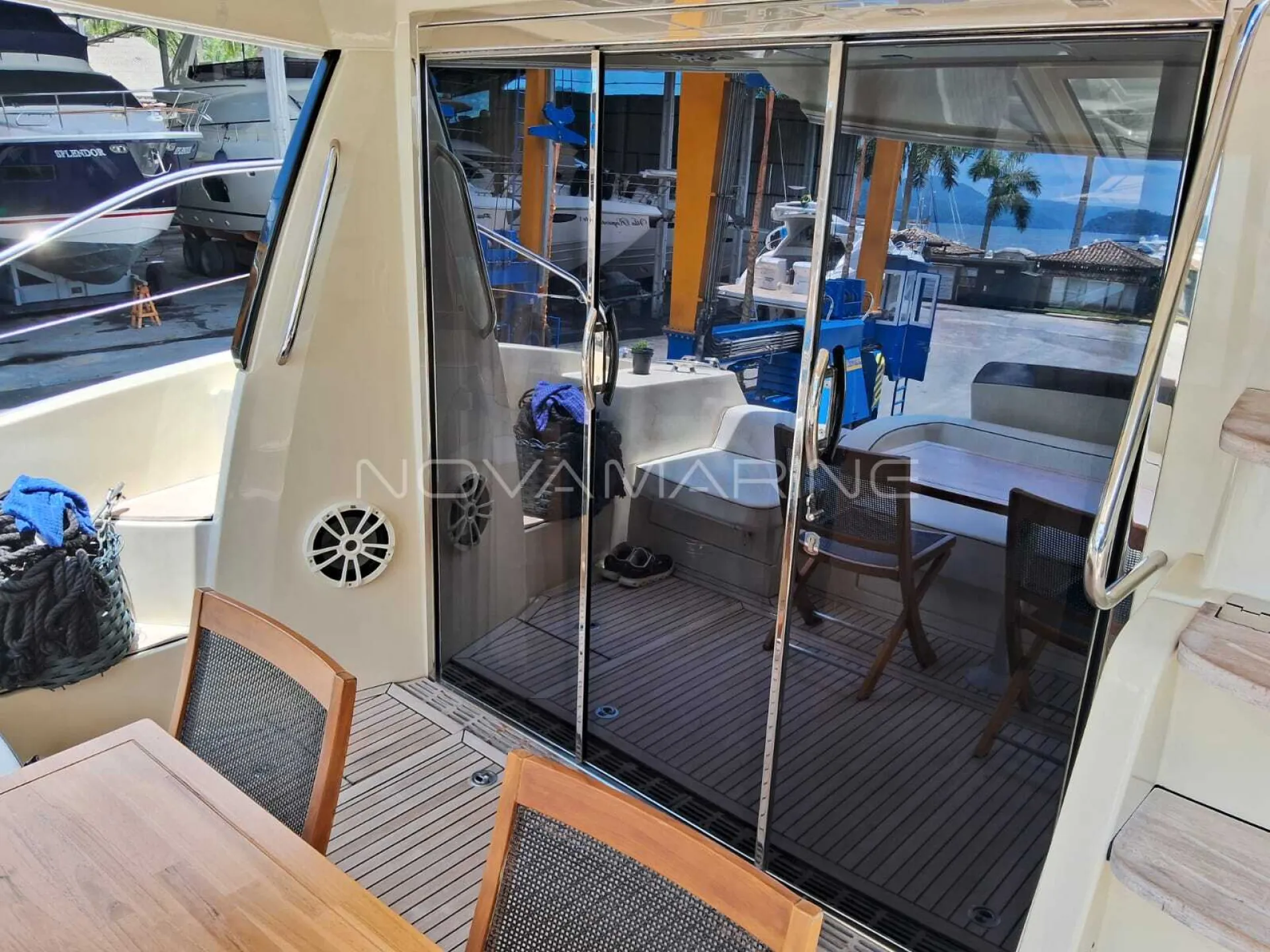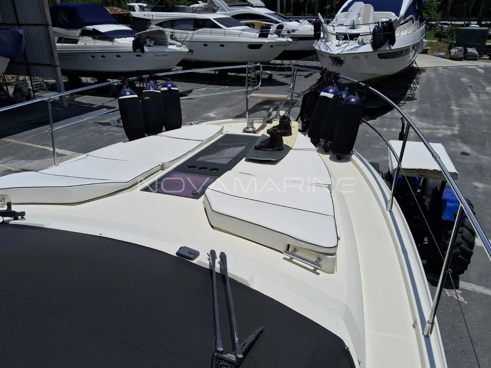 Barco guardado no seco - Carreta de encalhe - Cozinha completa - Espaço Gourmet - Joystick Manobras - Piloto Automático - Plataforma submergível - Radar - Sistema som e TV Integrado - Sky