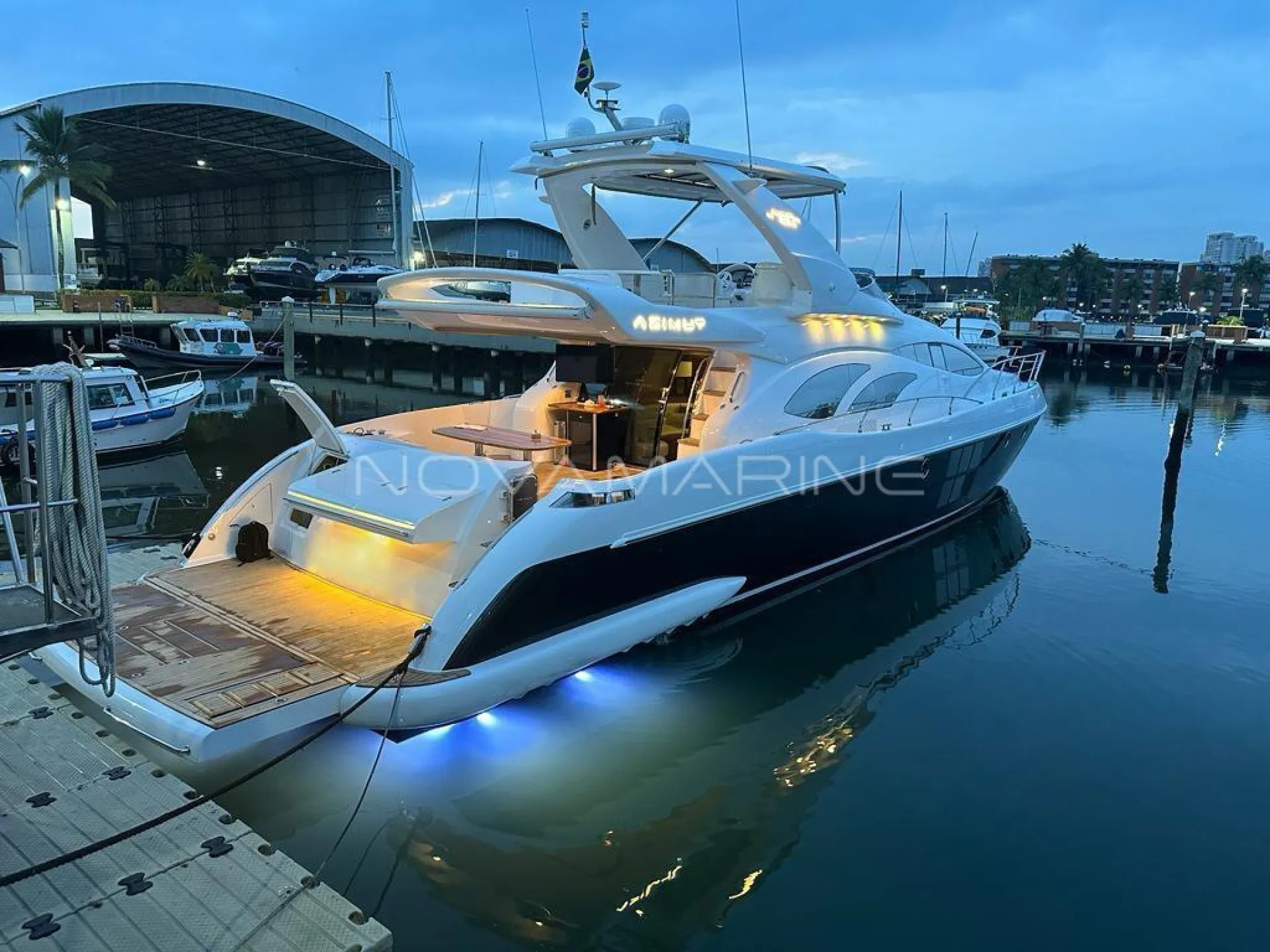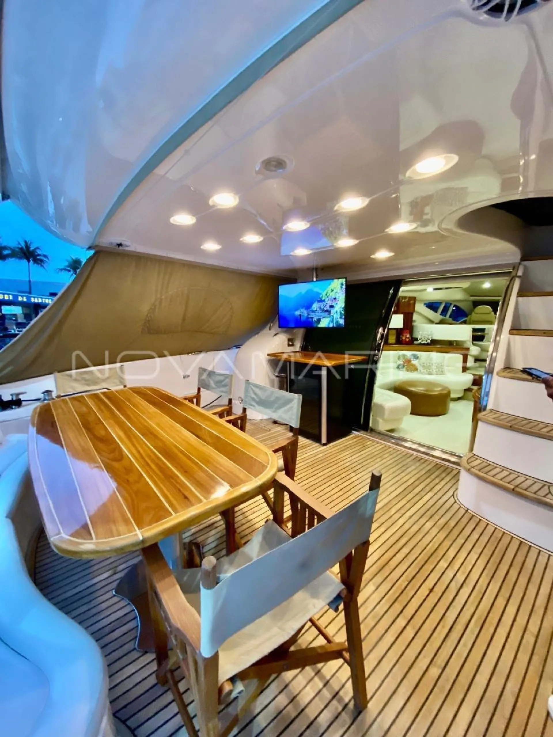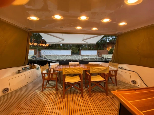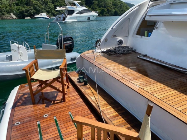 RENOVADA 2021 Totalmente revisado na própria MAN AngraMarine. Turbinas novas, trazidas diretamente por importação oficial MAN em Miami; Troca de todo o sistema de aftercooler original MAN (apesar de que tanto as turbinas, quanto o sistema de aftercooler não apresentavam nenhum defeito, só desgaste natural); Troca de todos os filtros e correias, além da pintura de todo o motor; Renovação dos pisos da casa de máquinas; Capas de proteção dos escapamentos novos; Revisão total em toda a parte de eletrônicos, troca de todos os carregadores elétricos e também dos transformadores. Revisão total na própria Intermarine. Foi instalado HARD TOP iluminado com led; Teto solar com cortina retrátil elétrica; Luzes subaquáticas; Moderna plataforma submergível, completíssima com escada retrátil e prateleira intermediaria para não existir vão entre as plataformas fixa e a submergivel.