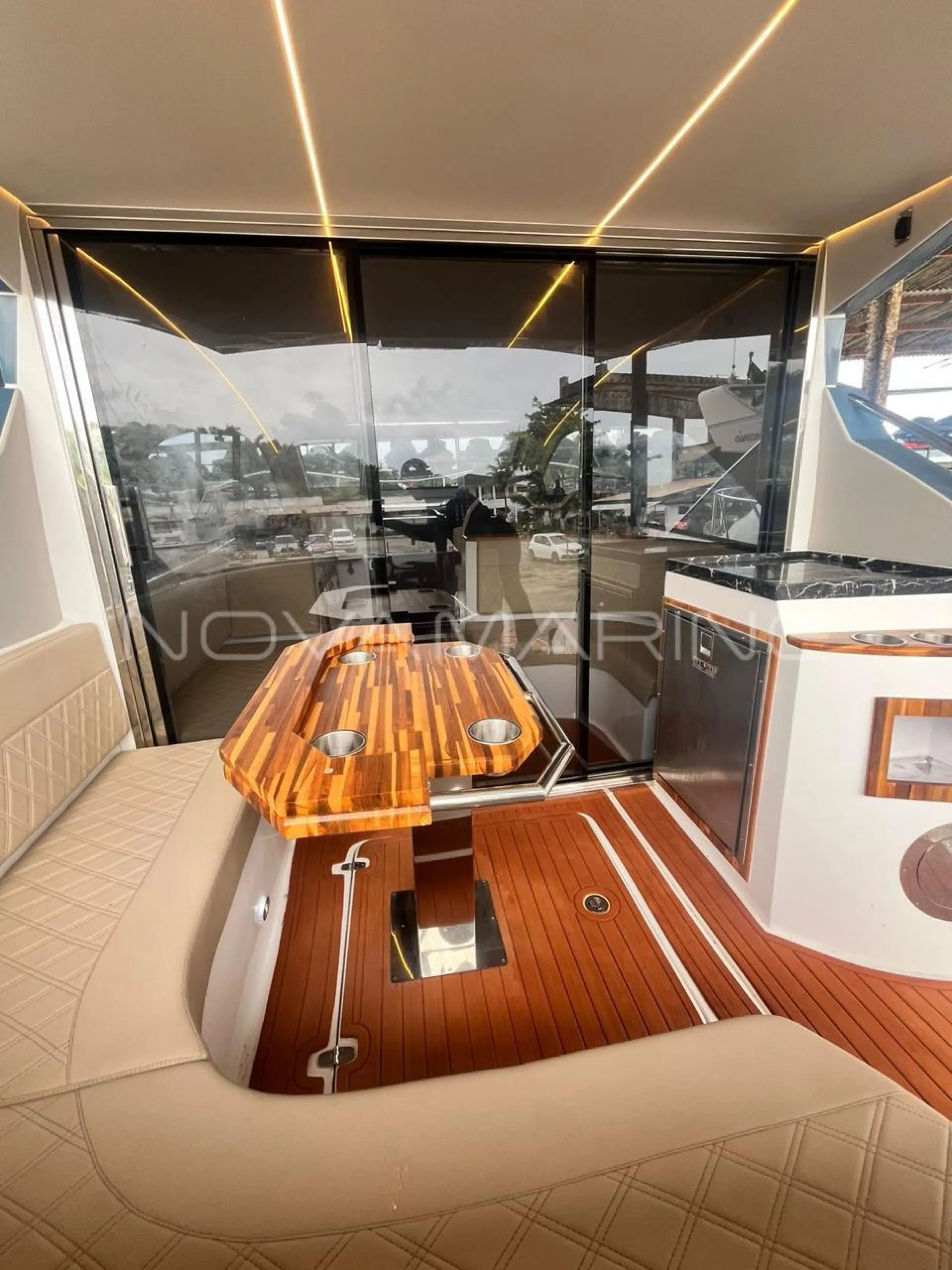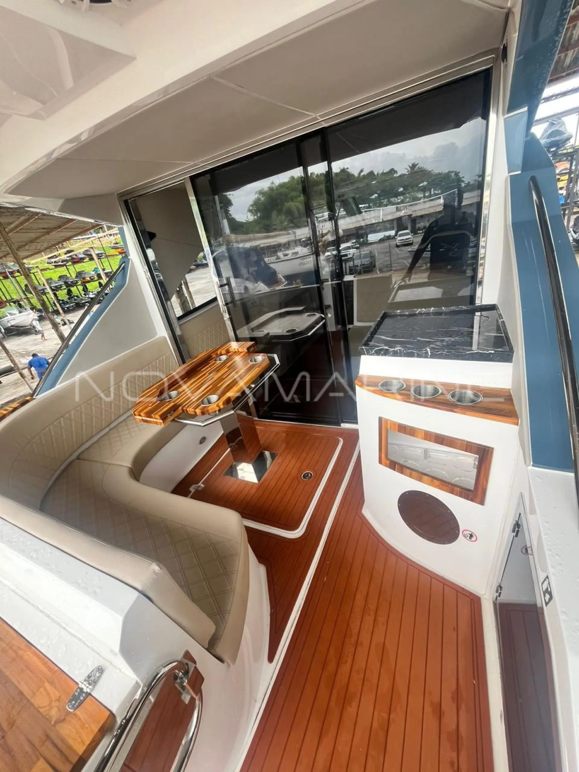 Ar condicionado 12mil BTUs (Cockpit) - Ar condicionado 16mil BTUs (Cabine) - Carregador de baterias - Carreta encalhe - Cervejeira Frigobar Elber - Churrasqueira elétrica - Cocktop - Flap 18x12 - Frigobar - GPS 9” - Gerador Kohler 9 KWA - Guincho elétrico completo - Inversor - Joystick Volvo - Luz subaquática 54 (par) - Microondas - Painel elétrico na cabine - Pintura Personalizada HT - Plataforma hidráulica Fundeck - Porta de vidro (Blindex) em inox - Piso EVA completo - Rádio VHF + Antena - Som Premium - TV 32” Cockpit (loft elétrico) - Tomada de cais
