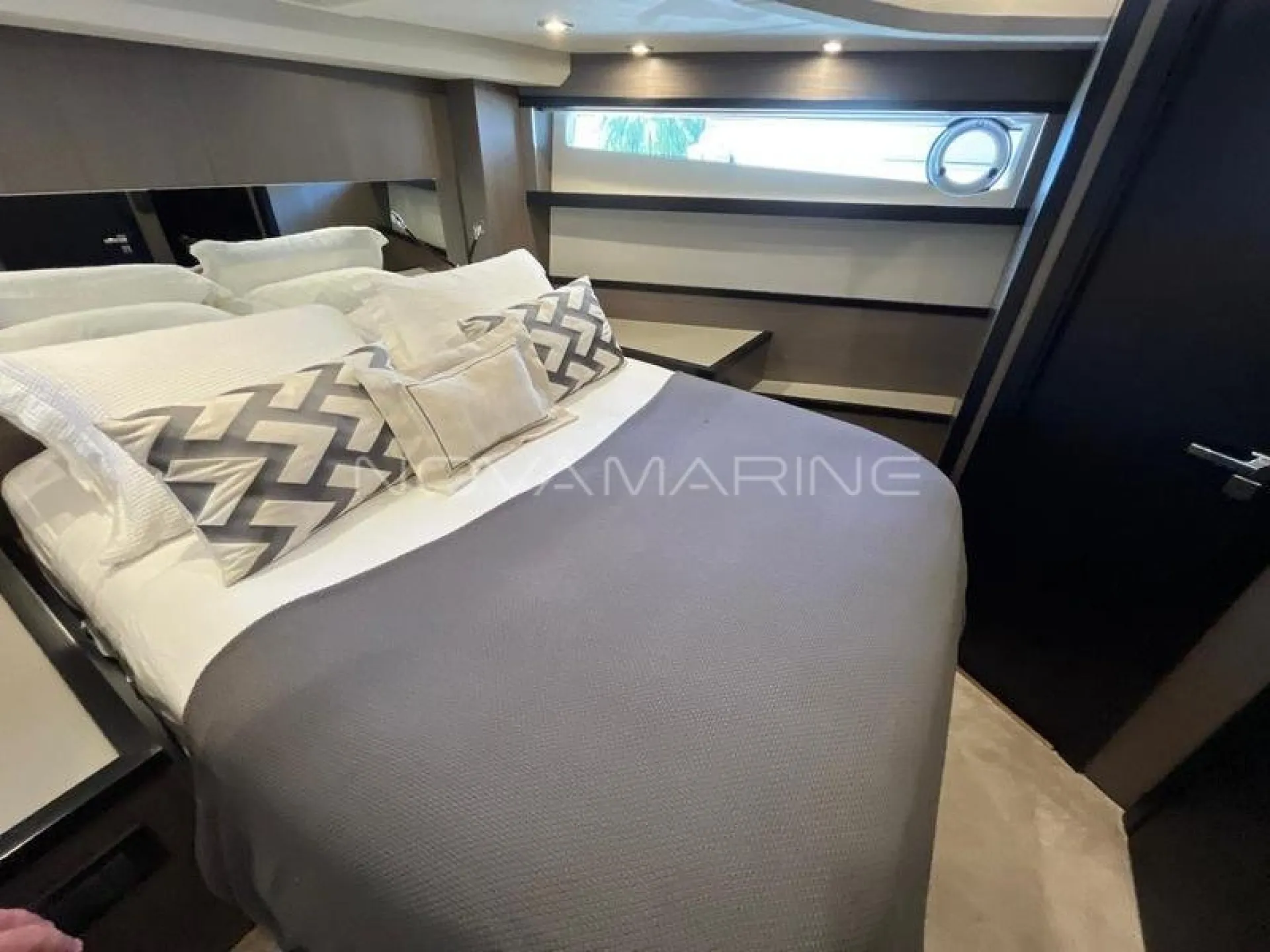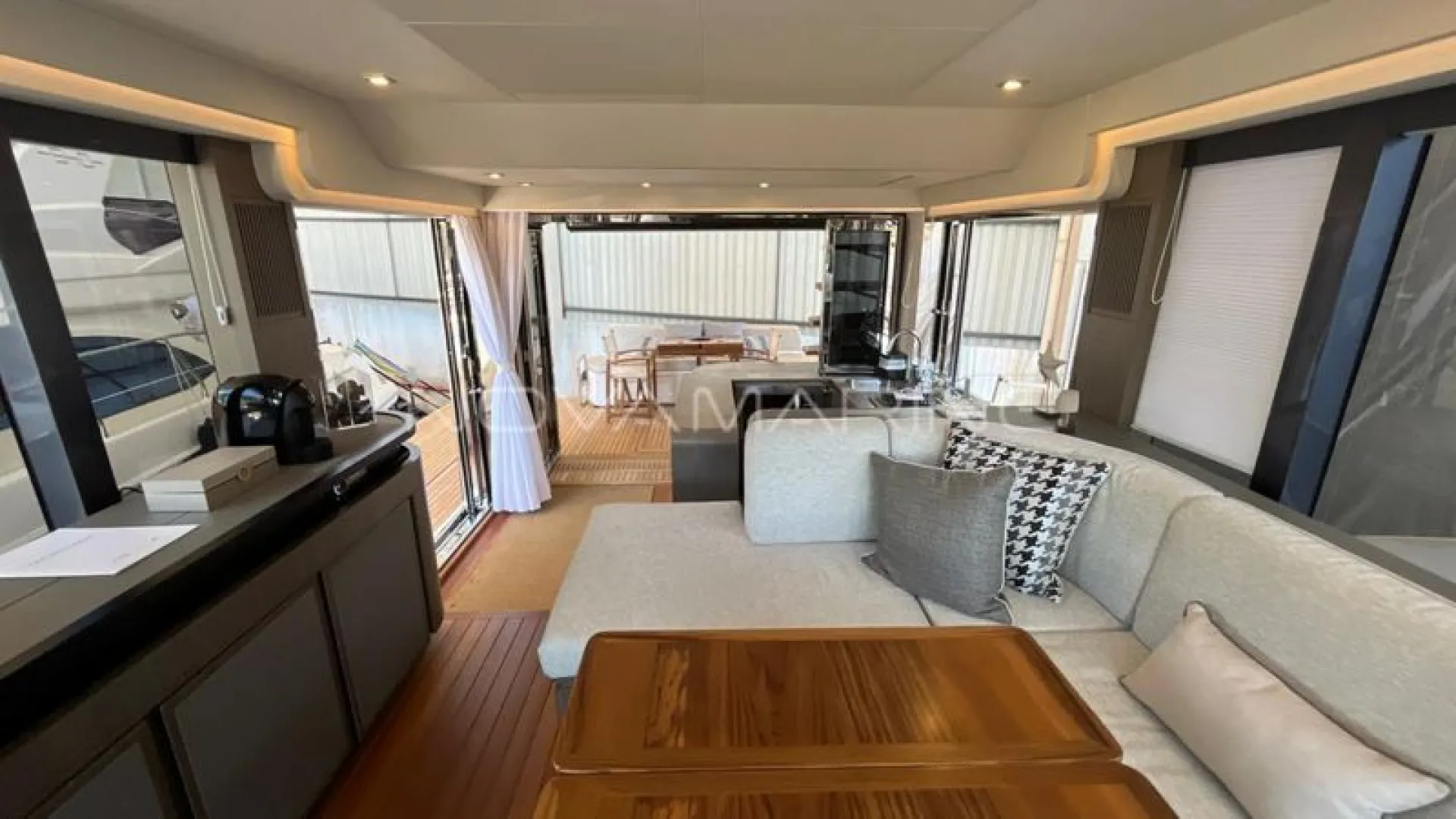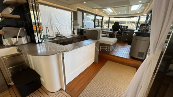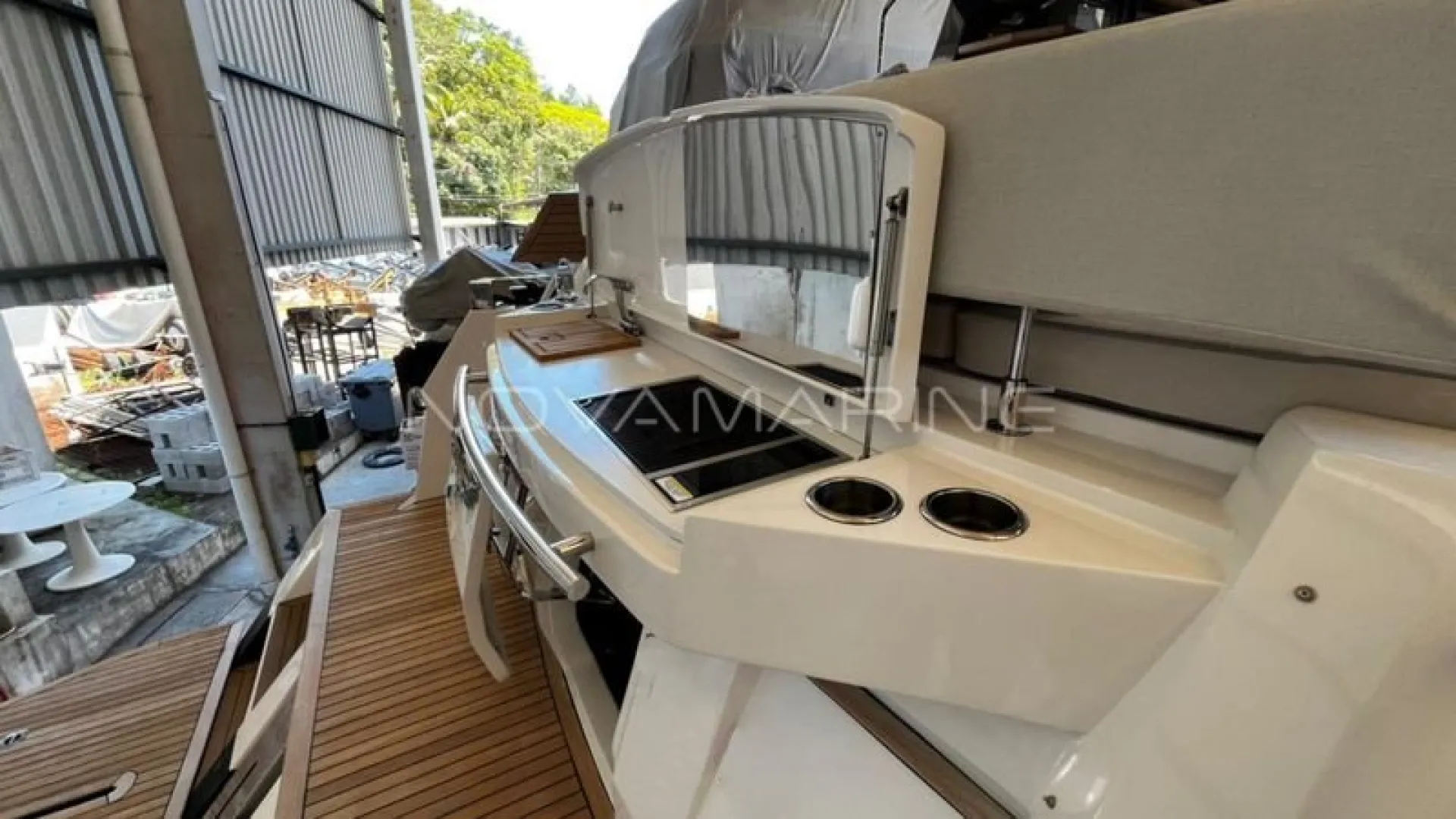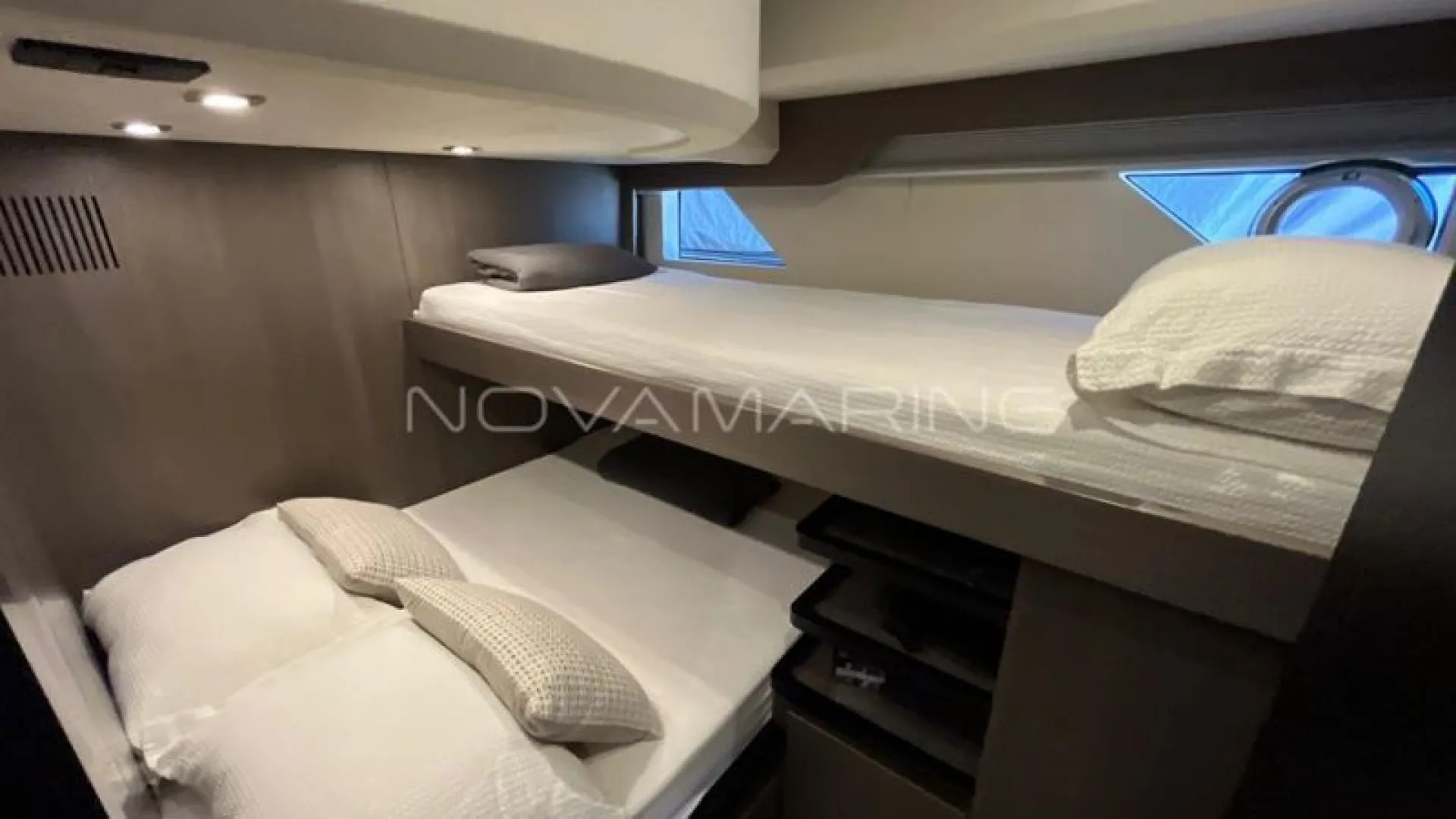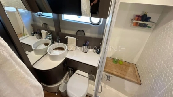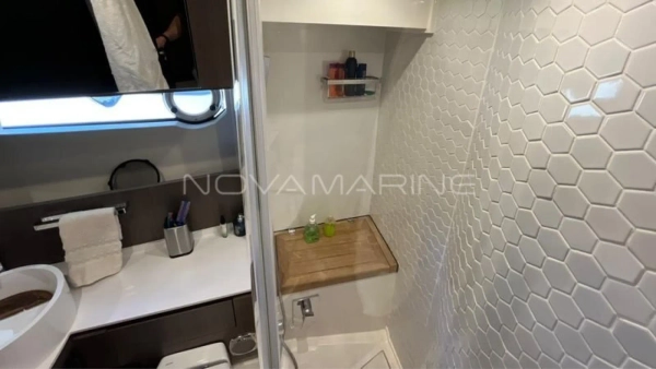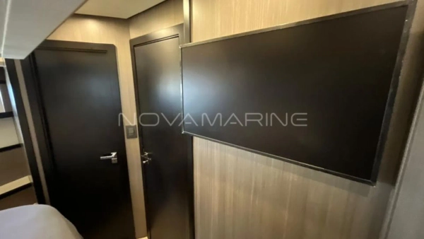 (4) TV de LED. lift embutido no armário à boreste - (6) Ar-Condicionado com total de 74.000 BTU's - (7) baterias seladas para 12V - 70 metros de corrente - Antena Starlink - Boiler de água quente elétrico (40 litros) - Bow Thruster com controles nas estações de comando - Bússola com iluminação montada na linha do horizonte - Capas do estofamento externo - Carreta Píer - Churrasqueira elétrica, pia e tábua de corte - Dessalinizador - DPS (âncora eletrônica) - Enrolador de cabo Glenndening - Flaps ZIPWAKE com painel de controle - Freezer ISOTHERM AC/DC 90 litros - Gaveta freezer 36 litros - Guarda mancebos em fibra de vidro - Ice maker na praça de popa com capacidade de 18kg/dia - Luzes submergíveis - 3 unidades (Azul e Branco) - Mesa de madeira com abas dobráveis - Mesa de popa dobrável para 8 pessoas, com cadeiras - Plataforma submergível Lift H+B - Capacidade 55Okg - Posto de comando com porta-copos e Tomada 12v USB - Protetor e Âncora em aço inox polido - Refrigerador ISOTHERM AC/DC 130 litros - Seakeeper NG5 - Sistema anticorrosivo ativo VOLVO - Sistema de atracação assistido - Solário de proa com encostos ajustáveis e porta copos - Stobag - Tendalino na proa - Terceiro comando do IPS com joystick na popa - Trava de âncora e chuveiro para lavagem de correntes