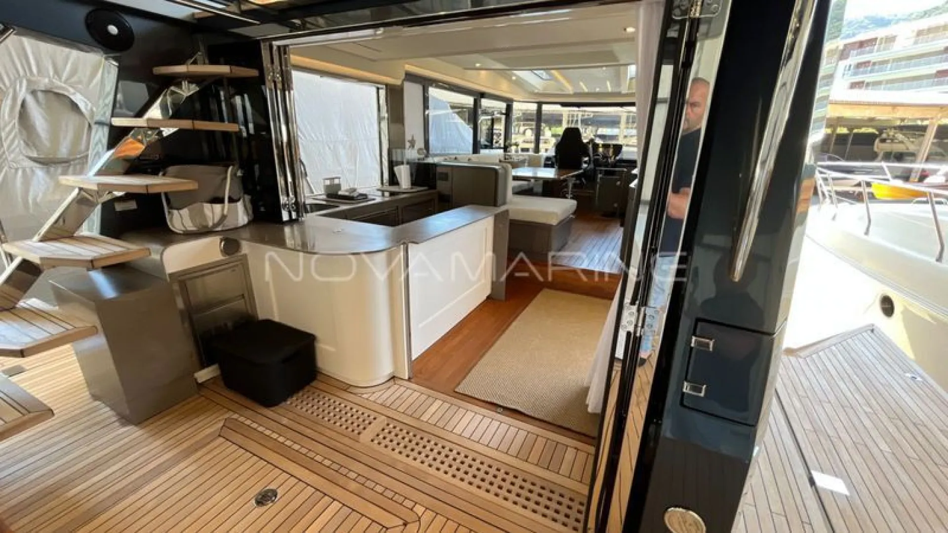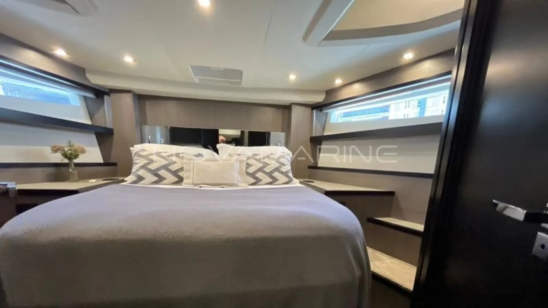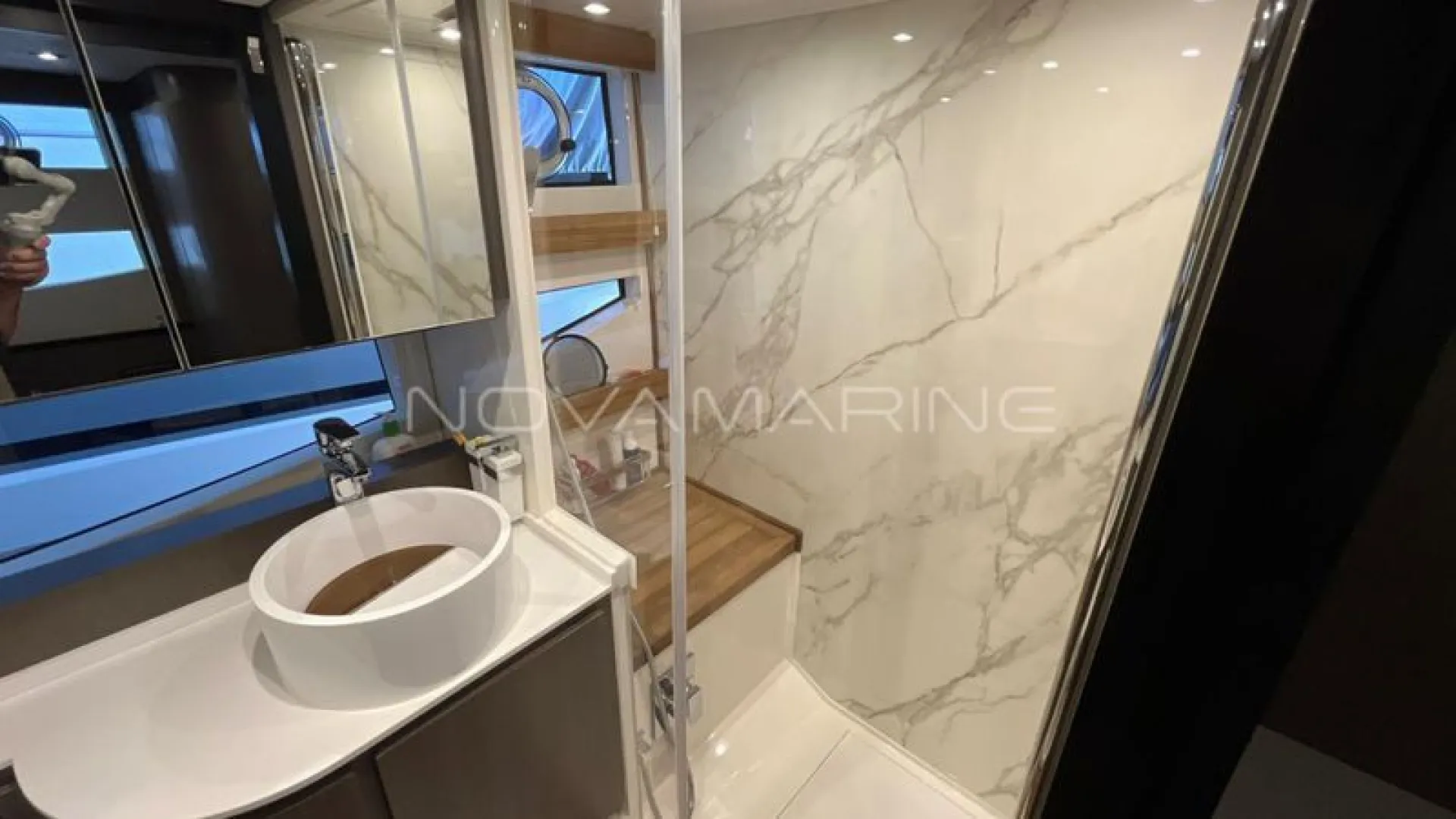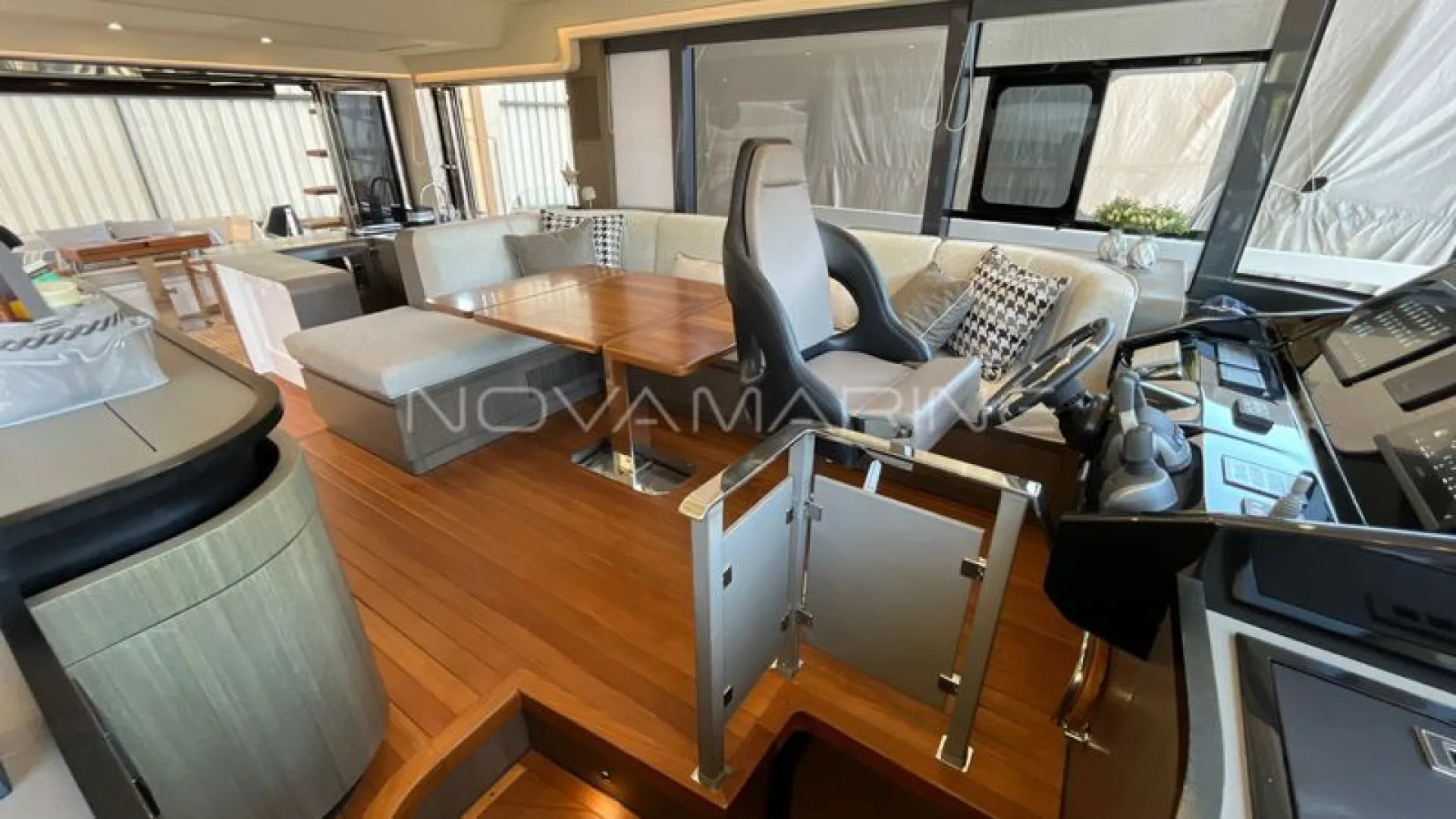 (4) TV de LED. lift embutido no armário à boreste - (6) Ar-Condicionado com total de 74.000 BTU's - (7) baterias seladas para 12V - 70 metros de corrente - Antena Starlink - Boiler de água quente elétrico (40 litros) - Bow Thruster com controles nas estações de comando - Bússola com iluminação montada na linha do horizonte - Capas do estofamento externo - Carreta Píer - Churrasqueira elétrica, pia e tábua de corte - Dessalinizador - DPS (âncora eletrônica) - Enrolador de cabo Glenndening - Flaps ZIPWAKE com painel de controle - Freezer ISOTHERM AC/DC 90 litros - Gaveta freezer 36 litros - Guarda mancebos em fibra de vidro - Ice maker na praça de popa com capacidade de 18kg/dia - Luzes submergíveis - 3 unidades (Azul e Branco) - Mesa de madeira com abas dobráveis - Mesa de popa dobrável para 8 pessoas, com cadeiras - Plataforma submergível Lift H+B - Capacidade 55Okg - Posto de comando com porta-copos e Tomada 12v USB - Protetor e Âncora em aço inox polido - Refrigerador ISOTHERM AC/DC 130 litros - Seakeeper NG5 - Sistema anticorrosivo ativo VOLVO - Sistema de atracação assistido - Solário de proa com encostos ajustáveis e porta copos - Stobag - Tendalino na proa - Terceiro comando do IPS com joystick na popa - Trava de âncora e chuveiro para lavagem de correntes