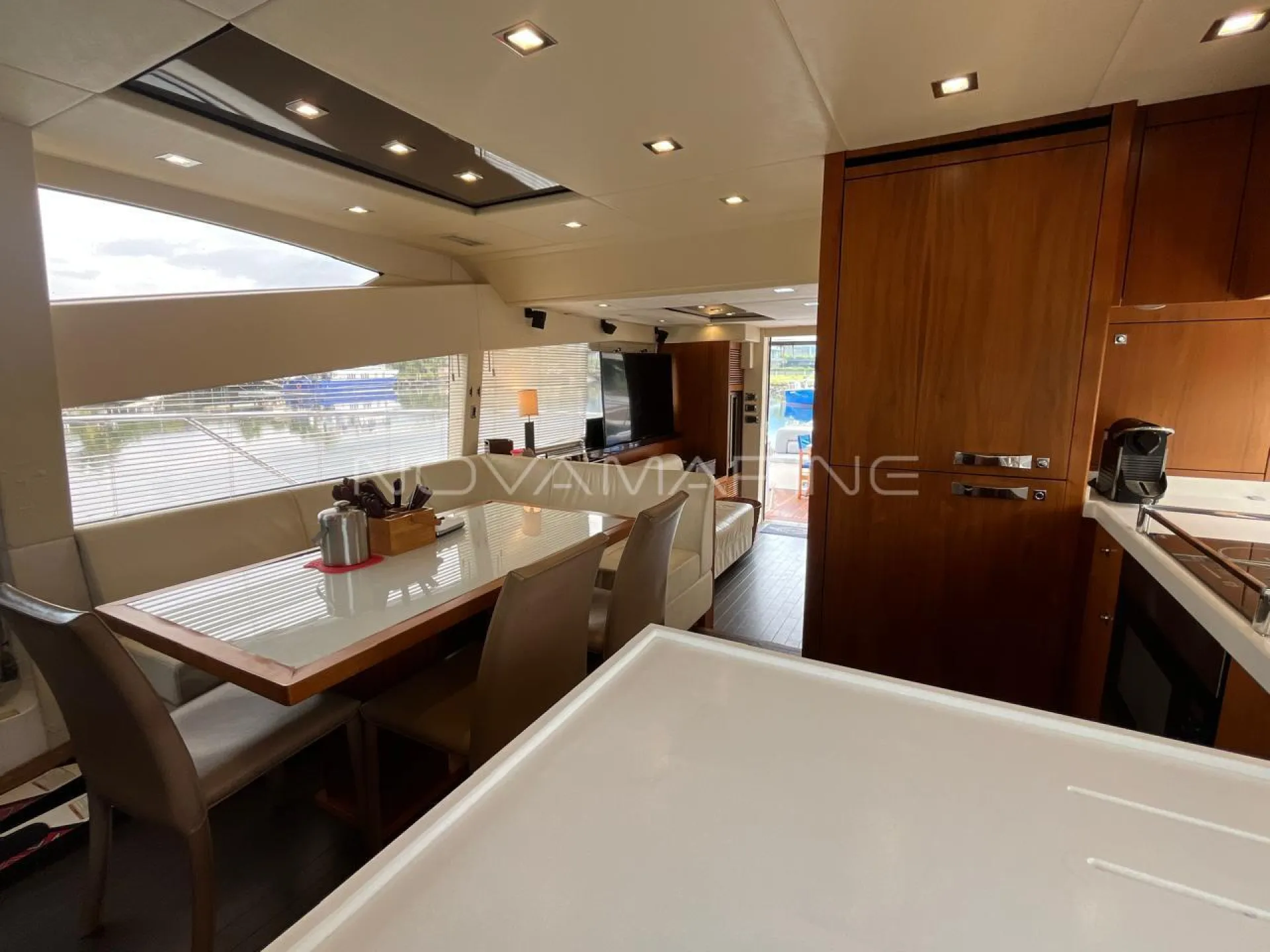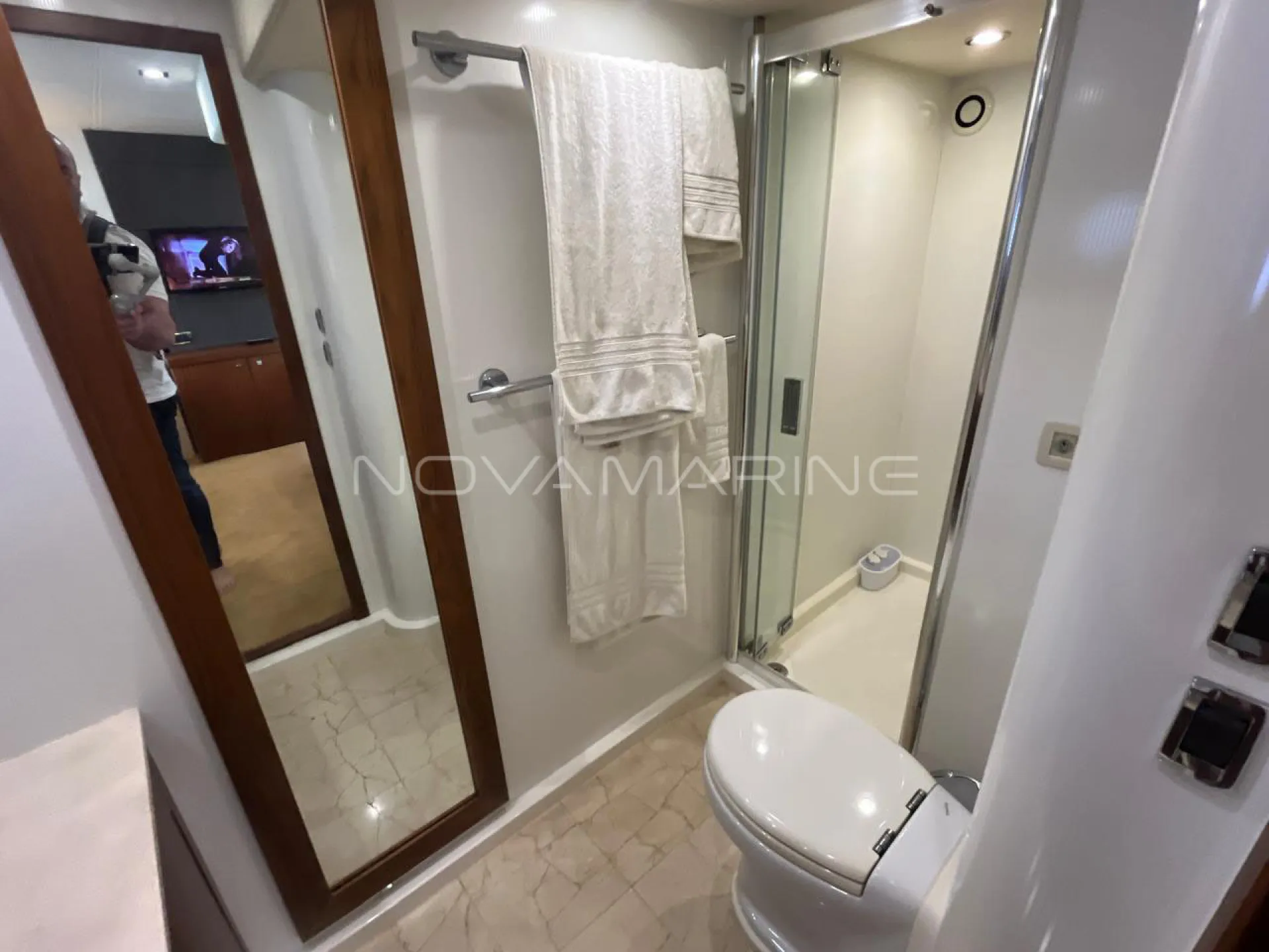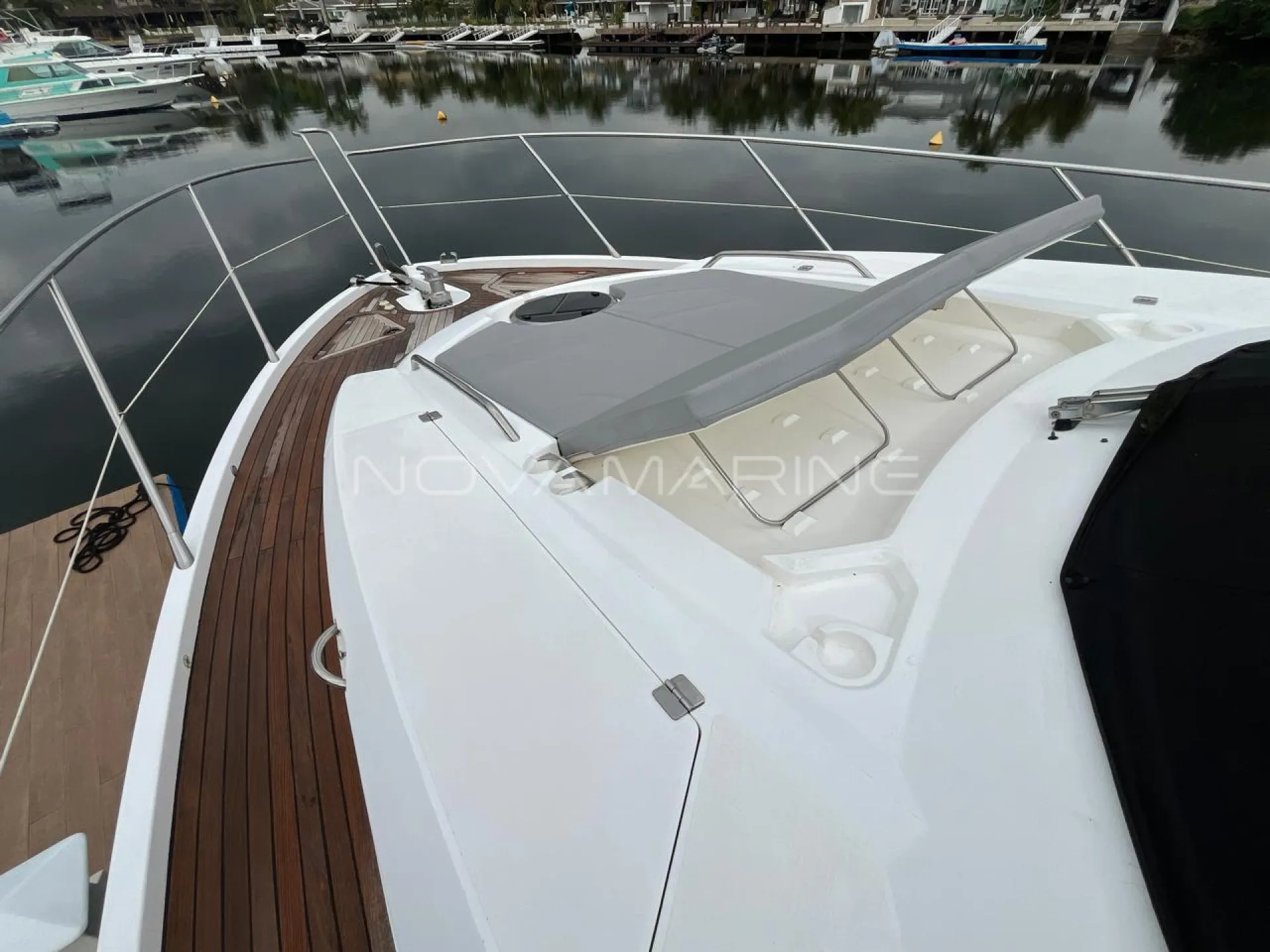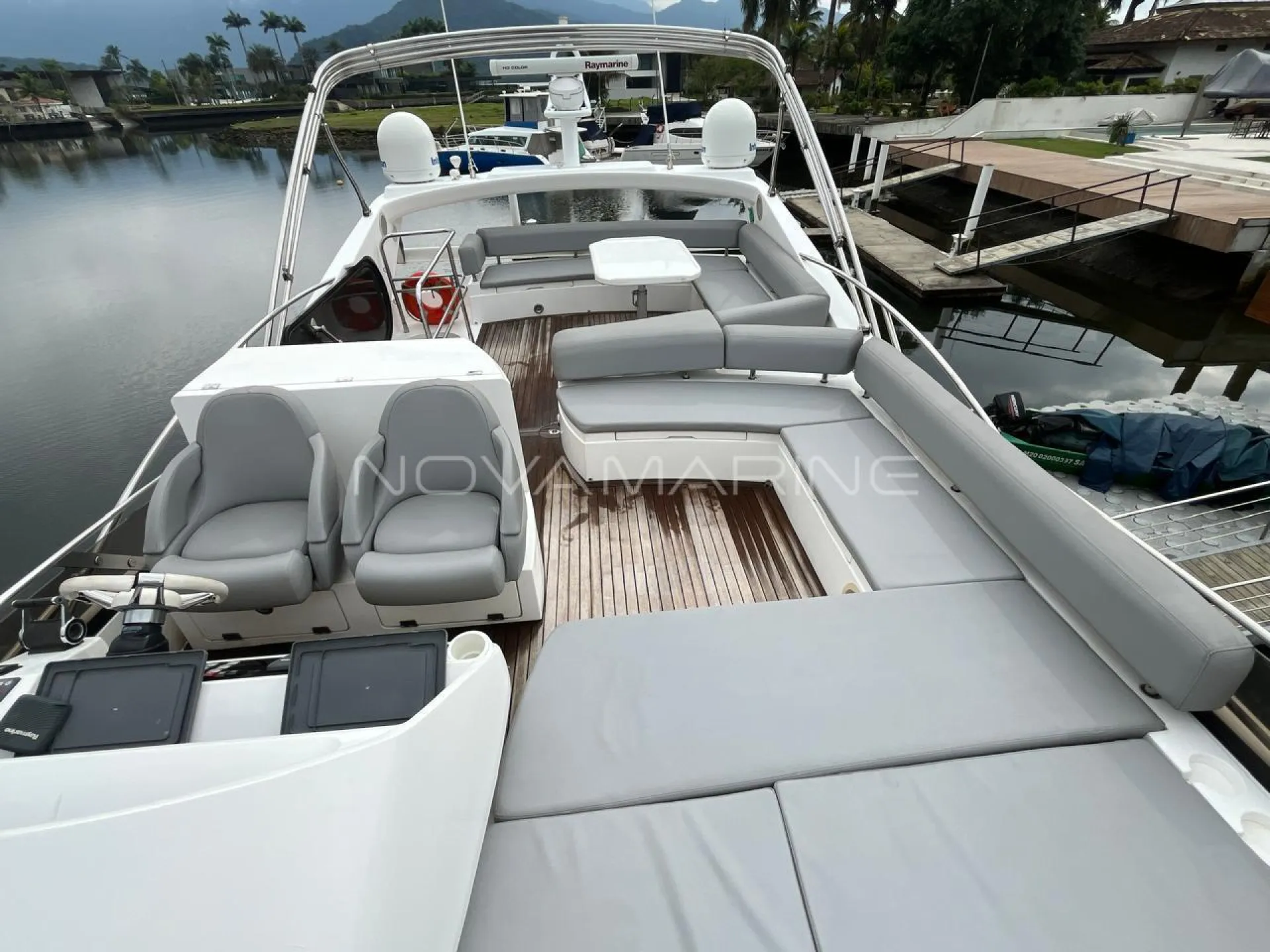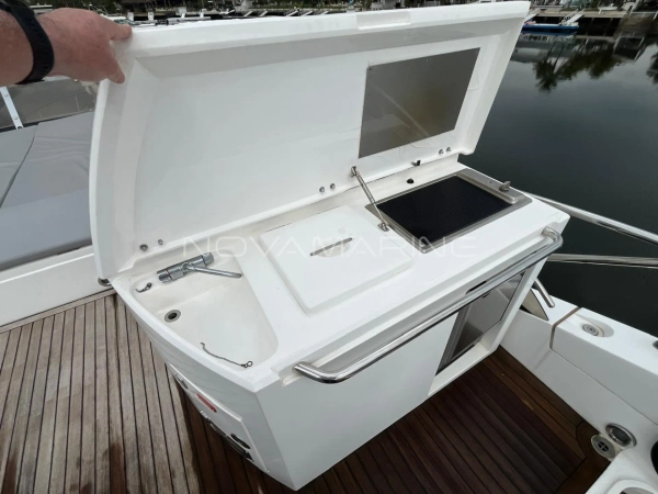 Bow thruster - Chuveiros com box - Dessalinizador - Eletrônicos Raymarine - Estabilizador Seakeeper - Plataforma submergível - Praça de popa e passadiços Revisões Man na autorizada - Stern thruster - Teka na plataforma de Popa - Toldo Stobag