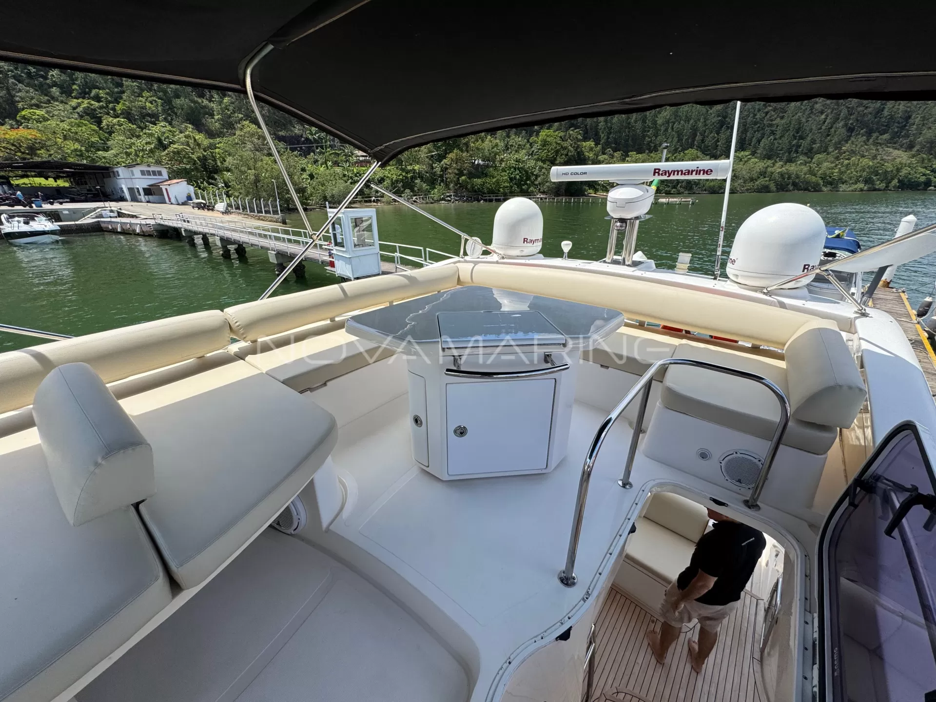 Bow e Stern Thruster - Caixas de som JL Áudio - Carreta com rodado de pneu - Espaço Gourmet na popa e no fly - Plataforma submergível - Radar HD - SKY - Teka nova - Toldo Stobag.